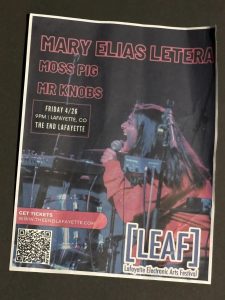 Following the film screening of Sisters with Transistors at The Collective Community Arts Center, a concert featuring front range electronic music artists was staged at The End, Lafayette (inside Doghouse Music Studios)