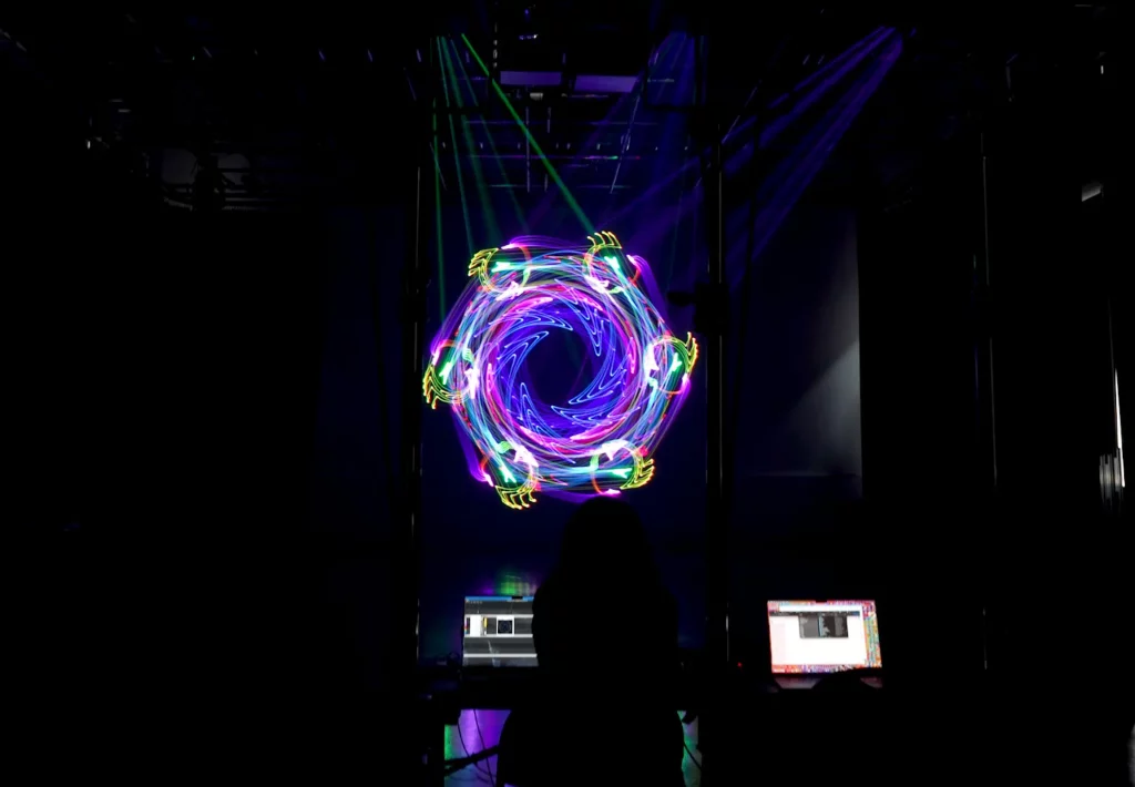 Augurs Wand is the Montreal-based visual music duo of Mike Cassidy and composer Kristian North. Powered by the three-laser Cerberus system and the Phosphene synthesis environment, the project unifies sound, form, and color into a synesthetic language of audiovisual ritual.